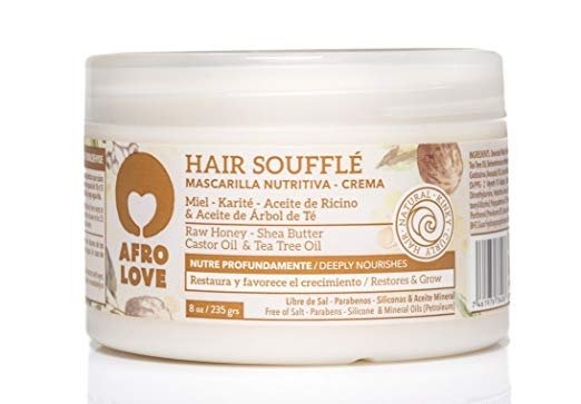 Afro Love Hair Souffle is een deep conditioning haarmasker om droog en beschadigd haar weer te herstellen. Geeft het haar weer zachtheid en glans, hydrateert en conditioneert de haarstreng, versterkt de haarstructuur en vermindert haarbreuk.