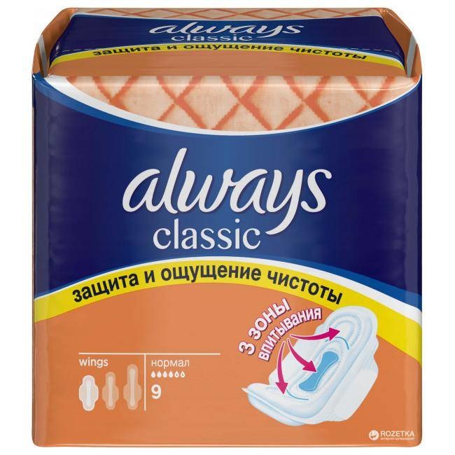Maandverband Always Classic Normaal met vleugels en drie actieve zones geven een gevoel van zuiverheid en bescherming bieden gedurende de dag. Bescherming en gevoel van zuiverheid 3 actieve zones Hygiënische pads met vleugels In individuele verpakking