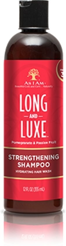 De perfecte verzorgingslijn van start-tot-finish voor naturalistas om hun haar langer en sterker te laten groeien. As i Am Long and Luxe Strengthening Shampoo Hydrating Hair Wash, reinigt het haar en hoofdhuid op een milde wijze en voegt vocht toe. Vermindert klitten en zorgt voor zacht en makkelijk door-kambaar haar. Versterkt het haar en zorgt voor langer haargroei!