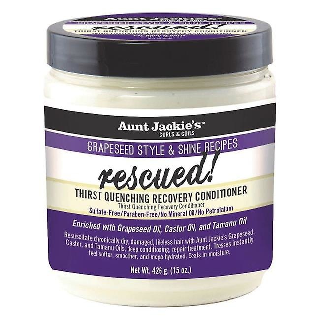Aunt Jackie's Grapeseed Rescued! Thirst Quenching Recovery Conditioner is een ultra-hydraterende, deep conditioning behandeling. Vers geplukt uit de Grapeseed Recepten-collectie, wordt voedende druivenpitolie gemengd met de herstellende en groeivoordelen van castor en tamanu oliën om droog en beschadigd haar te doen herleven en te herstellen. Je zult een dramatisch verschil merken in de manier waarop je haar eruit ziet en aanvoelt na het eerste gebruik. Rescued! is een geweldige conditioner voor jouw wasdagroutine en een uitstekende remedie voor herstel bij gebruik na een clarifying shampoo.