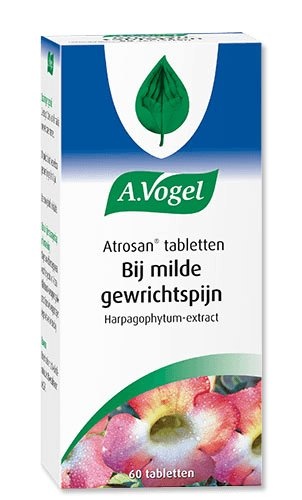 Atrosan tabletten van A.Vogel is een natuurlijke pijnstiller voor de gewrichten en bevat een hoge concentratie Harpagophytum. De tabletten kunnen gerust langdurig gebruikt worden. - Natuurlijke pijnstiller voor gewrichten - Bij reumatische pijn, zoals pijn bij artrose en artritis - Sterk geconcentreerd - Langdurig te gebruiken - Met bewezen effectief ingrediënt Tenzij anders is voorgeschreven ’s ochtends en ’s avonds 1 tablet tijdens de maaltijd met water innemen. De tablet in zijn geheel doorslikken.