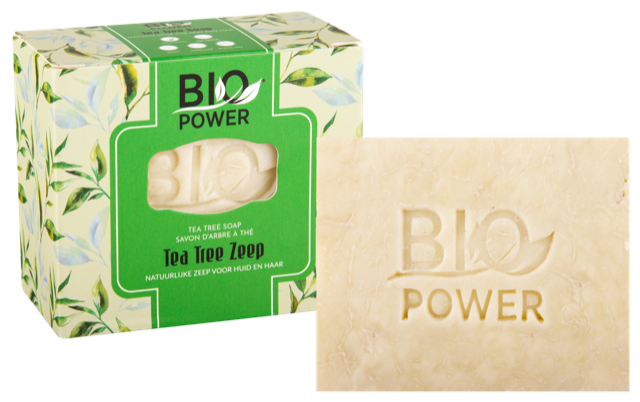 Biopower tea tree zeep heeft antiseptische en antibacteriële eigenschappen van tea tree .