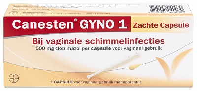 Canesten GYNO 1 Zachte Capsule is een snelle en effectieve 1-daagse behandeling bij vaginale schimmel. Je brengt het makkelijk in, het vormt zich naar je lichaam, het doodt de schimmel en verlicht zo snel de jeuk. - 1-daagse, snelle en effectieve behandeling voor vaginale schimmel - Doodt de schimmel en verlicht zo jeuk en een branderig gevoel - Behandeling met één zachte capsule voor inwendig gebruik met werkzame bestanddeel clotrimazol - Makkelijk in te brengen, vormt zich comfortabel naar het lichaam Canesten GYNO 1 Zachte Capsule is een effectieve 1-daagse behandeling. Het doodt de vaginale schimmel en verlicht zo snel de jeuk dankzij de werkzame stof clotrimazol. De zachte capsule is makkelijk in te brengen vormt zich naar je lichaam en zorgt voor een comfortabele, lokale behandeling voor (inwendig) vaginaal gebruik. Voor uitwendige verlichting van de jeuk behandel je aanvullend met Canesten GYNO Crème. Zwangerschap: Kan tijdens de zwangerschap gebruikt worden maar het wordt aangeraden tijdens die periode de capsule met de hand in te brengen (en dus niet met de applicator). Voor uitwendige behandeling van vaginale jeuk kun je, aanvullend op de (inwendige) zachte capsule Canesten, Canesten Gyno Crème gebruiken. Gebruik bij vaginale schimmelinfecties Canesten GYNO Zachte Capsule. De 1-daagse zachte capsule werkt snel en effectief.