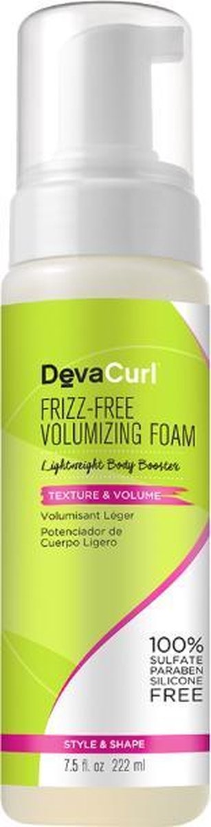 DevaCurl Frizz-Free Volumizing Foam Lightweight Body Booster, geeft je krullen extra volume en definitie. Deze alcohol-vrije lichte formule bevat een mix van citroengras en zonnebloemolie voor een pluis-vrije krullen met ongelofelijke volume en glans!