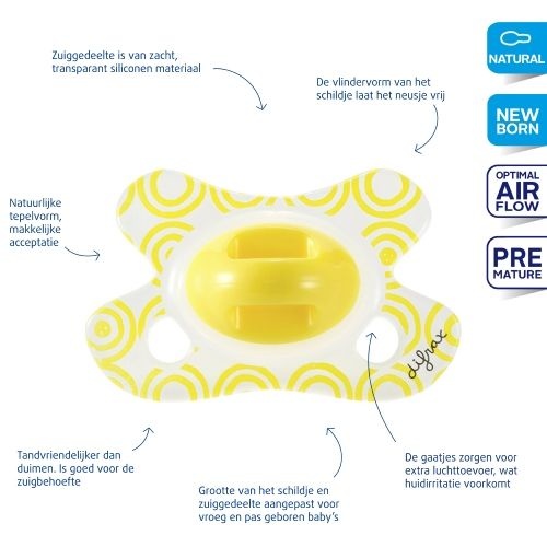 Klein schildje, klein zuigdeel. Voor vroeggeboren en pasgeboren baby’s. Het combi model lijkt op de tepelvorm en is geschikt voor baby’s die zelf de fopspeen omdraaien. Het mondstukje van de combi fopspeen is bol, waardoor er geen boven- of onderkant van de speen is. Je kindje heeft tot een maand of 5 meestal een sterke zuigbehoefte. Soms is je kindje huilerig omdat hij honger heeft, maar soms kan je de reden niet achterhalen. Met een fopspeen kun je je baby troosten. Als je baby slaapt met een fopspeen heeft hij minder snel de neiging om op de buik te draaien, wat de kans op wiegendood verkleint. Verder leert een fopspeen je kind door de neus te laten ademen Verschillende design's