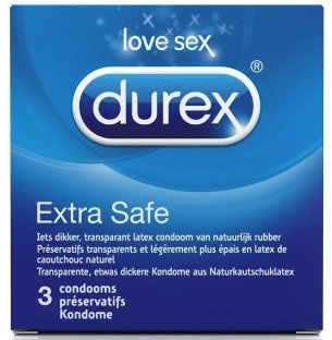 De Durex Extra Safe was voorheen Durex Topsafe. Durex Extra Safe Condooms zijn iets dikker en daardoor nog veiliger. Met extra glijmiddel en een reservoir. De Easy-On-pasvorm is speciaal gevormd voor meer comfort. De condooms zijn gemaakt van transparant, natuurlijk rubber latex. Handige, compacte verpakking van drie stuks