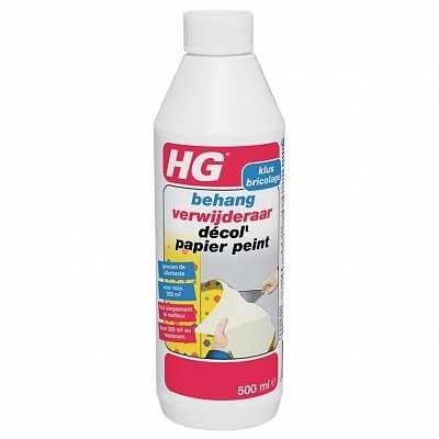 HG behang verwijderaar Is een super geconcentreerd, uiterst krachtig middel dat in staat is om alle soorten behanglijm snel op te lossen waardoor alle soorten behang, zoals papier-, afwasbaar-, waterafstotend-, vinyl-, metaal-, en afstripbaarbehang, er binnen een uur afvliegen.