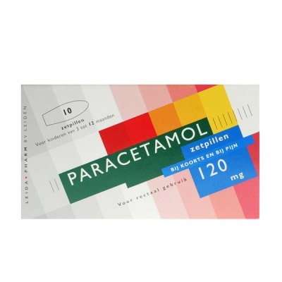 Bij koorts en pijn bij griep en verkoudheid, hoofdpijn, kiespijn, zenuwpijn, spit, spierpijn, menstruatiepijn en koorts en pijn na vaccinatie. Leidapharm Paracetamol 120mg werkt snel bij koorts en pijn bij griep en verkoudheid, koorts en pijn na inenting, hoofdpijn, kiespijn, spit en spierpijn, menstruatiepijn en zenuwpijn. Paracetamol heeft een pijnstillende en koortsverlagende werking. Leidapharm Paracetamol 120mg is een medicijn dat goed helpt bij lichamelijke ongemakken. De paracetemol werkt perfect pijnstillend en koortsverlagend. Type: zetpil. Aantal: 10 stuks. Lees voor gebruik de bijsluiter Werkzame stof(fen) PARACETAMOL Contra indicaties Overgevoeligheid voor paracetamol of voor één van de hulpstoffen. Dosering Kinderen: 3 maanden tot 1 jaar (5,5 - 10 kg): 120 mg 2 tot 3 keer per dag 1 - 2 jaar (10 - 12,5 kg): 240 mg 2 tot 3 keer per dag 2 - 4 jaar (12,5 - 17 kg): 240 mg 3 keer per dag 4 - 6 jaar (17 - 22 kg): 240 mg 4 keer per dag 6 - 9 jaar (22 - 30 kg): 500 mg 2 tot 3 keer per dag 9 - 12 jaar (30 - 40 kg): 500 mg 3 keer per dag 12 - 15 jaar (40 - 55 kg): 1000 mg 2 tot 3 keer per dag Volwassenen: 500 mg , meerdere keren per dag bij het weer opkomen van de verschijnselen (koorts en pijn). De dagdosering is maximaal 4000 mg per dag. Waarschuwingen Niet gebruiken bij overgevoeligheid voor paracetamol of voor een ander bestanddeel van de zetpillen. Lees voor het gebruik de bijsluiter.Risicowaarschuwing: • Overleg met uw huisarts als u ook andere pijnstillers gebruikt, bijvoorbeeld op recept.Zelfcheck/ Wanneer naar dokter • Als u langer dan twee weken pijnklachten heeft. • Als u al langer dan een week griepverschijnselen heeft die niet verbeteren. • Als u drie dagen per week of vaker pijnstillers nodig heeft tegen hoofdpijn. • Als u meer dan 6 tabletten per dag nodig heeft, gedurende meer dan 2 weken. Lees voor gebruik de bijsluiter