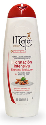 Maya Bodylotion extreme moisture (extra dry skin) Hidratacion intensiva: De perfecte verzorging voor een extreem droge huid. De speciale snel absorberende formule verrijkt met amandel olie en vitamine E revitaliseerd de huid. Uitstekend geschikt voor dagelijks gebruik