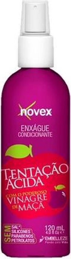 Ontdek het verzachtende en herstellende effect van deze Novex-spray met appelazijn. Beschermt en repareert het haar tegen dagelijkse aanvallen, verzorgt gespleten haarpunten. Al vele jaren weten we dat appelazijn een optimaal product voor haren is. Met de nieuwe Acid Temtaption Novex-lijn kunt u de pH waarde in je haar in balans brengen. Het is een lijn zonder siliconen, parabenen, zout en minerale oliën, voor glanzend en zacht haar dat je niet kunt weerstaan! Ideaal voor alle haartypes!