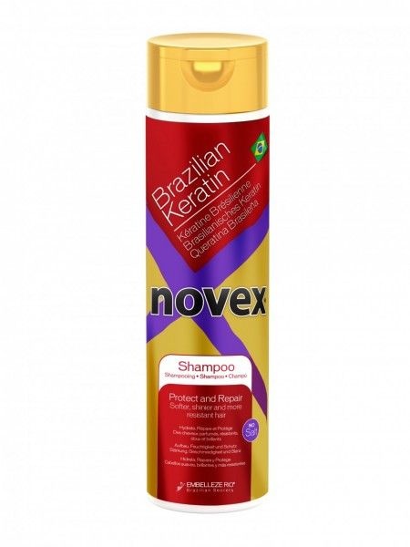 Novex Brazilian Keratin Shampoo bevat keratine-eiwit dat de structuur van de haarvezels versterkt, waardoor het elastisch wordt, voor glans en zachtheid zorgt en de natuurlijke beweging van het haar na het wassen verbetert.
