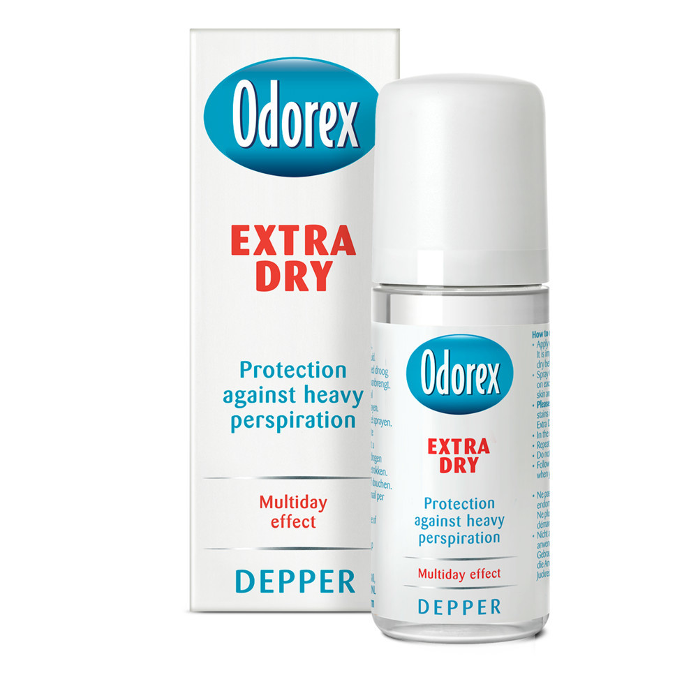 Odorex Extra Dry Depper onderdrukt op een verantwoorde manier overmatige transpiratie en voorkomt transpiratiegeur. De formule is heel effectief en tevens mild voor de huid. Bovendien is Odorex Extra Dry Depper alcoholvrij en parfumvrij. Je brengt de Depper 's avonds voor het slapen gaan direct op je oksel aan, en je hoeft het maar 2-3 keer per week te gebruiken. Odorex Extra Dry Depper is door het deppersysteem makkelijk doseerbaar. Het is niet nodig naast Odorex Extra Dry nog een reguliere deodorant te gebruiken, maar dit kan uiteraard wel als je dat prettig vindt.