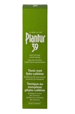 Voorkom haaruitval met de Plantur 39 Phyto-Coffeïne-tonicum Plantur 39 Phyto-Coffeïne-tonicum beschermt de haarwortel en versterkt de haargroei. Vroegtijdige haaruitval is niet alleen bij mannen, maar ook bij vrouwen een zorgwekkende ontwikkeling. Zodra de menopauze zijn intrede doet, krijgen 3 op de 4 vrouwen te maken met toegenomen haaruitval. En wanneer er niets tegen gedaan wordt, leidt dit onvermijdelijk tot kale plekken. De cafeïne in het tonicum voorkomt dat de haargroei na de menopauze (de overgang) afneemt. Uit een toepassingsonderzoek dat uitgevoerd is in een Kliniek voor Dermatologie en dermatologische Allergologie met diverse testpersonen, gaf 95% van de testpersonen aan het product verder te willen gaan gebruiken. Onder de testpersonen was een hoge mate van tevredenheid. Deze hoge acceptatie is vooral ook te danken aan de uitstekende verdraagzaamheid op de hoofdhuid en de vermindering van typische hoofdhuidproblemen, zoals een vette huid, jeuk en een gespannen huidgevoel. Breng de Coffeïne-tonicum één keer per dag direct met de doseertip op de hoofdhuid aan en masseer deze gelijkmatig in. Laat het even dro gen en kam het haar vervolgens door om het in model te brengen. De Coffeïne-tonic moet niet uitgespoeld worden! Was uw haar uitsluitend met een op uw haar afgestemde Phyto-Cafeïne-shampoo van Plantur39