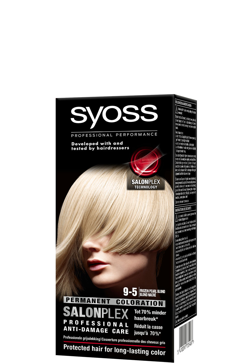 De professionele haarkleuring van SYOSS in de kleur 9-5 Frozen Pearl Blond geeft een perfect natuurlijke lichtblonde kleur vol glans De SYOSS Color Cream haarkleuring geeft je haar een langdurig en glanzend kleurresultaat met professionele grijsdekking.