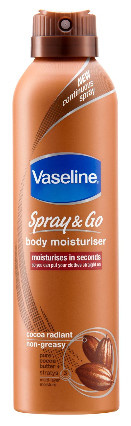 Vaseline Cocoa Radiant Bodylotion Spray voor een gezond glanzende huid. - Hydrateert meteen en trekt snel in - Maakt de huid zacht en niet vet of plakkerig - In één gemakkelijke spray aan te brengen Hoe te gebruiken? Voor het beste resultaat: Op 10 cm afstand van de huid over het gehele lichaam sprayen in één soepele beweging. Snel inwrijven en Go