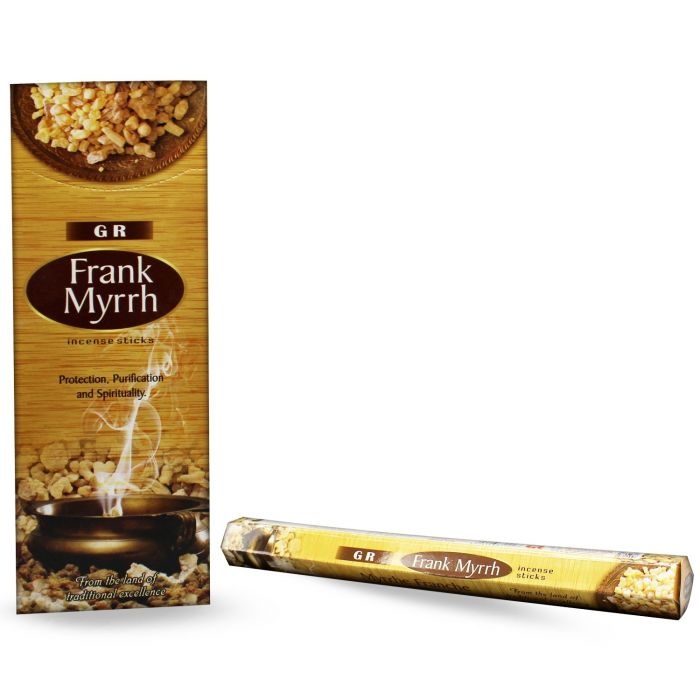 Ervaar hoe de Wierook Frank Myrrh onaangename damp verdampt en laat de ruimte over aan een fijne wolk vol met kruiden-fruitige aroma's.