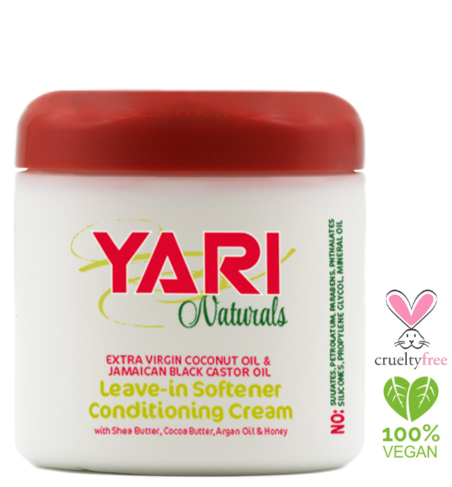 Breng het beste van krullend haar naar boven met de Leave-in Softener van Yari Naturals. De voedingsrijke leave-in crème versoepelt en activeert de natuurlijke krul en zorgt voor een pluisvrij resultaat. De krullen crème hydrateert de krullen en geeft ze meer definitie. De haarproducten van de Yari Naturals-lijn bestaan uit natuurlijke ingrediënten zoals, kokos olie, castor olie, shea butter, jamaicaanse zwarte castor olie en honing.