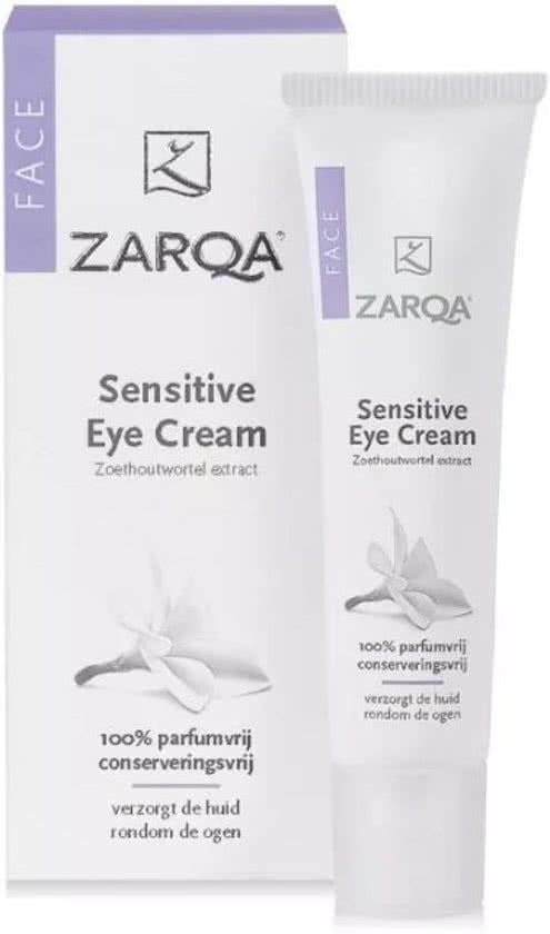 De zachte formule van Sensitive Eye Cream voor de gevoelige huid met kamille en een vitaminecomplex. verzorgt en kalmeert de gevoelige huid rondom de ogen. De ZARQA Oogcrème voor de gevoelige huid verzacht rimpeltjes, expressielijntjes en vermoeidheidstekenen. Kamille verzorgt, kalmeert en verzacht de huid. Deze oogcrème is dankzij de milde samenstelling ook uitermate geschikt voor lensdragers. - 100% parfumvrij - bevat geen allergenen, parabenen, paraffine en is kleurstofvrij - verzorgt en kalmeert de gevoelige huid rondom de ogen - zachte formulering - geschikt voor lensdragers